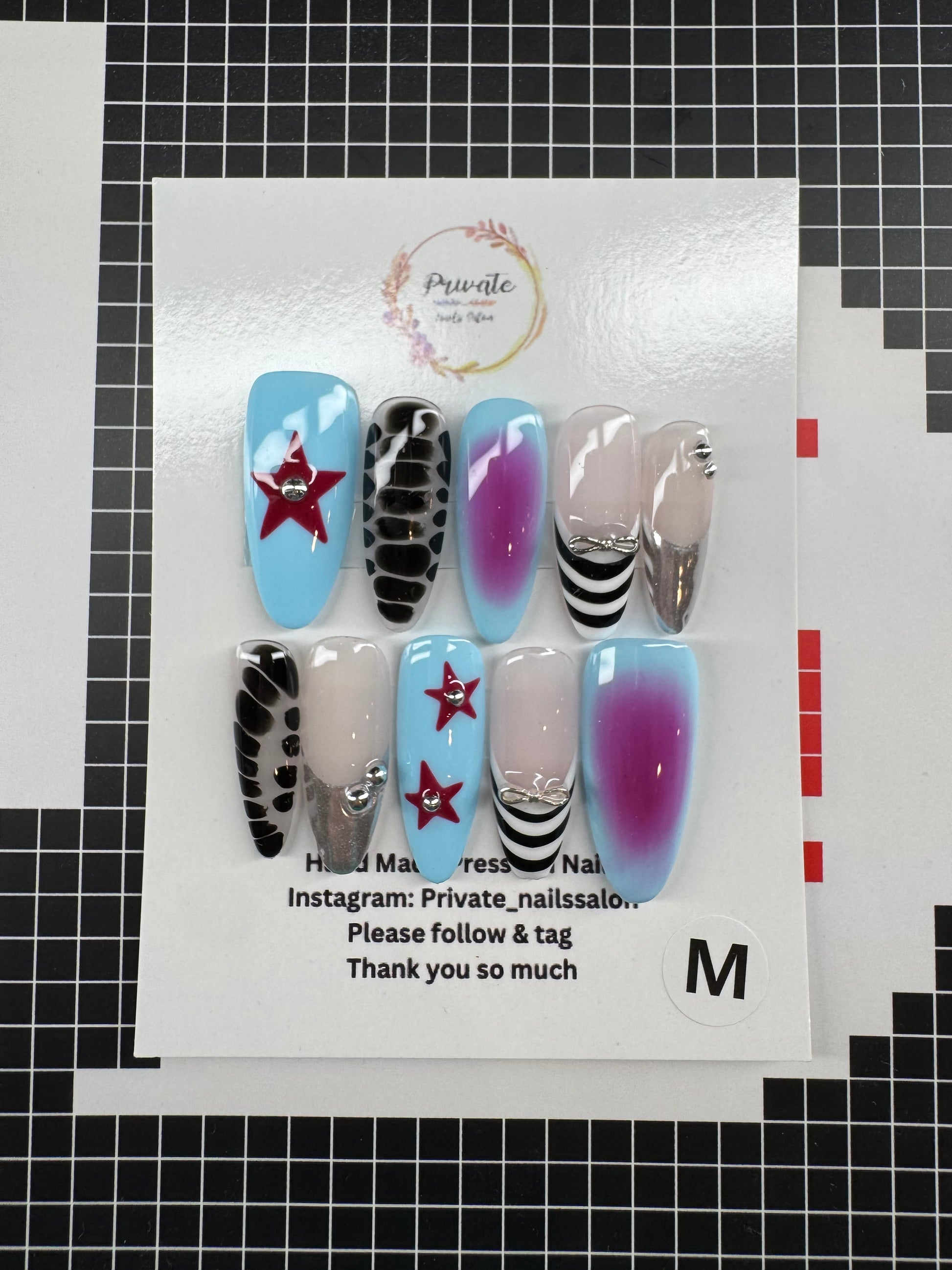 - If our standard sizes do not fit you, please measure your nails using the above instructions and reach out to us with your specific measurements so we can create a custom size for you.
